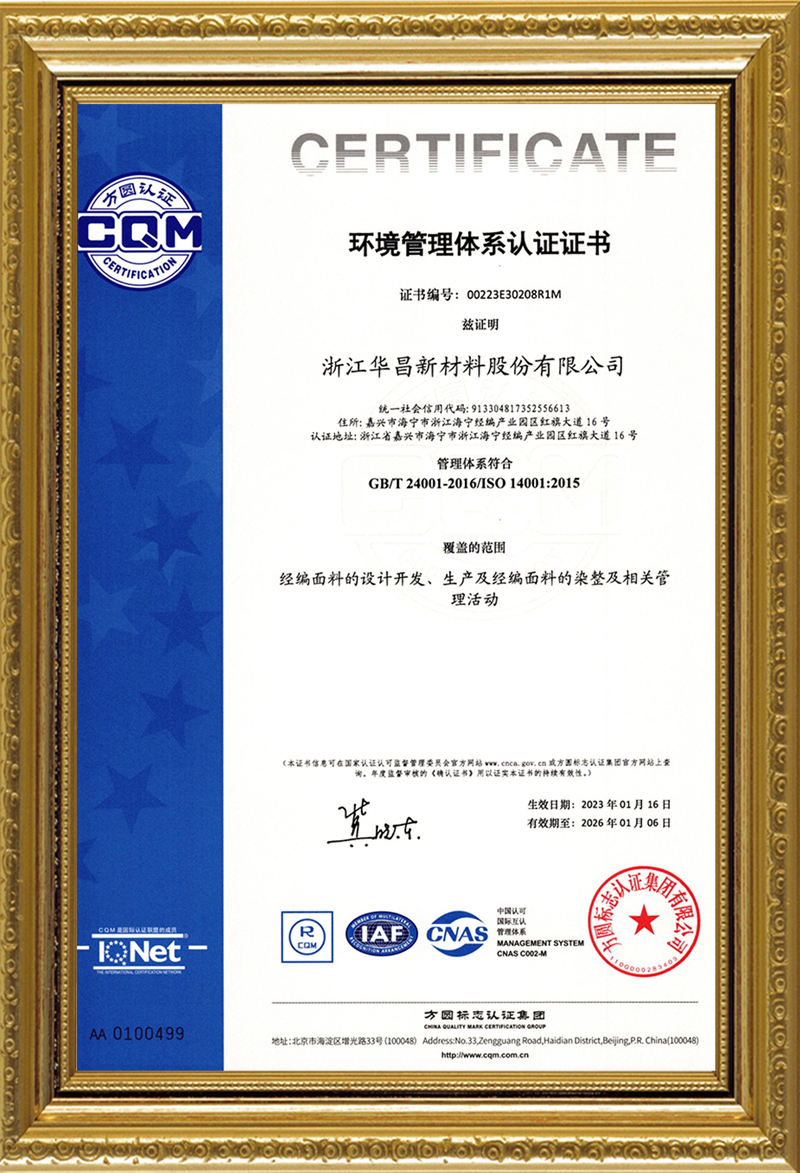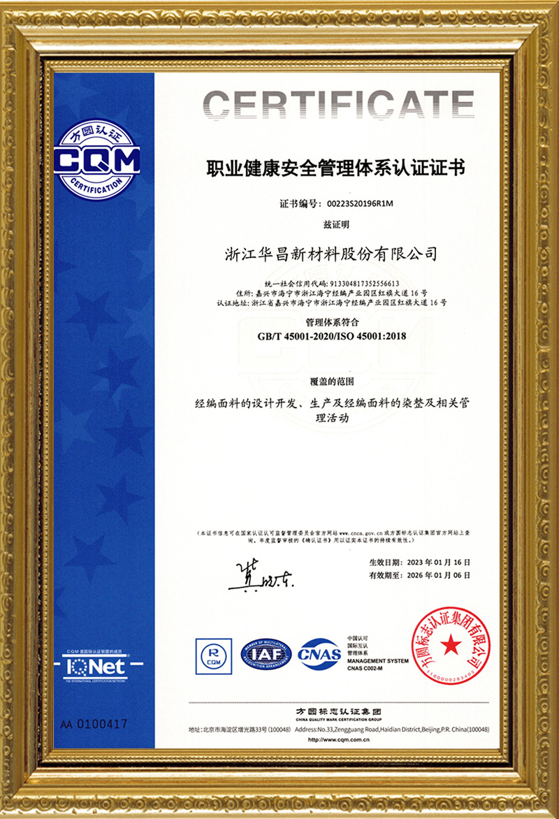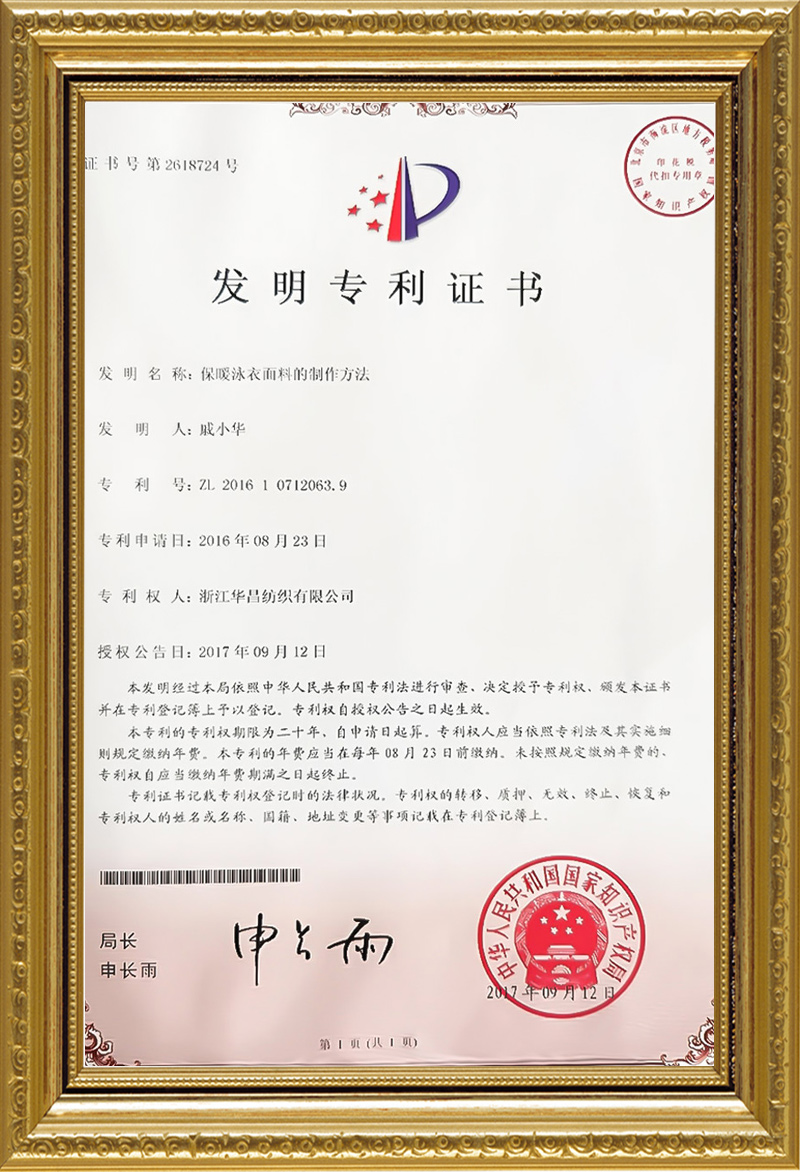 公司還是“泳裝面料國家標準起草單位”、“國家高新技術企業”、“浙江省科技型中小企業”、“嘉興市高新技術研發中心”并且多個新產品、新工藝獲國家專利稱號,公司已通過ISO9001質量管理、45001職業健康安全、14001環境管理等體系的三標一體認證以及Oeko-tex100、Detox、GRS、Inditex、Higg等第三方認證。公司將始終堅持高質量的品牌意識贏得客戶,始終堅持以人為本的精神與客戶與員工同發展共命運。